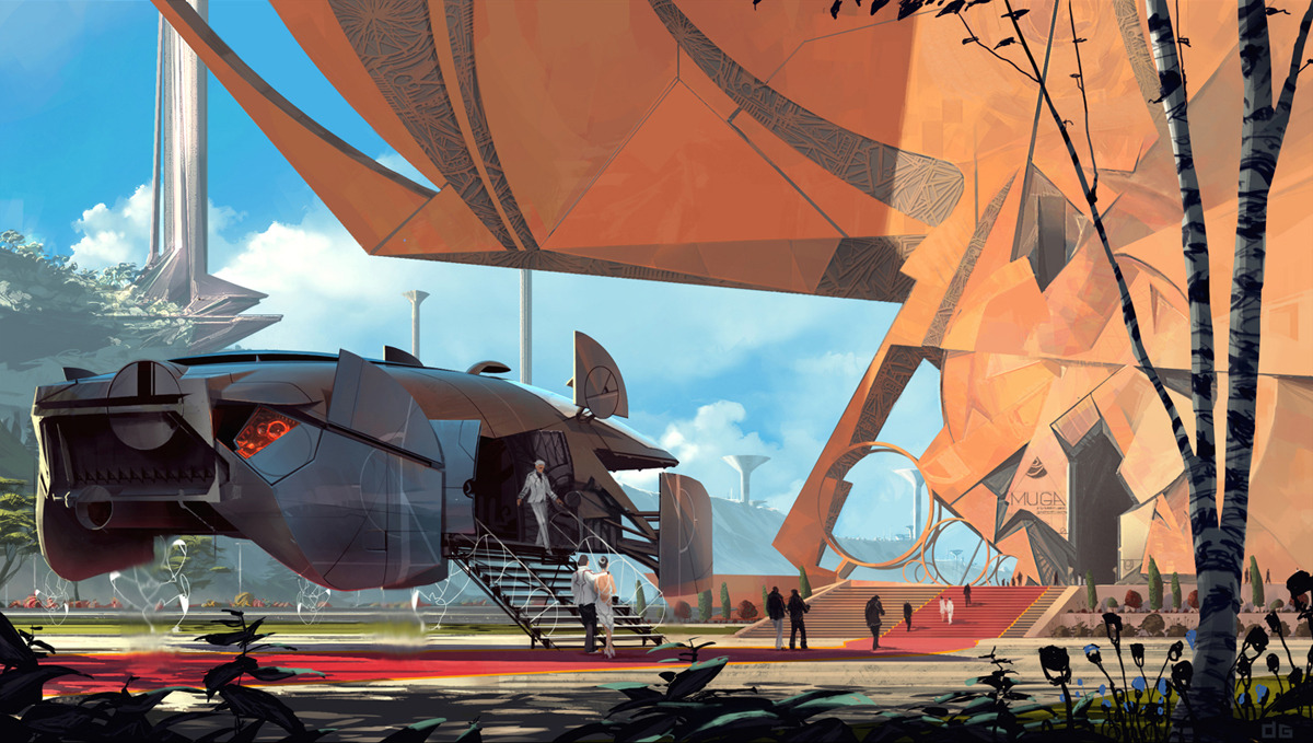 My absolute favorite pieces of his deal with some form of transportation or cityscape. He’s adapt at rendering both the idealistic, utopian future, and the post-apocalypse, deteriorated future. In both, the machines stand as a mark of the ingenuity and accomplishments of man.